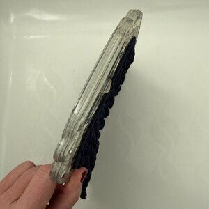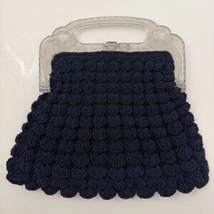 VINTAGE 30s Popcorn Crochet Navy Blue Peacock Handle Evening Bag