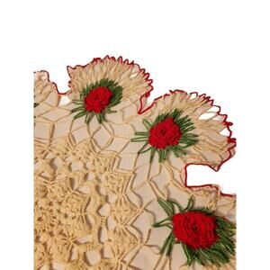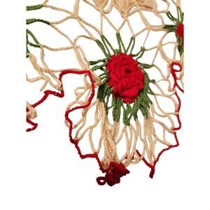 VINTAGE 3D CHRISTMAS HANDMADE CROCHET RED GREEN DOILY LARGE 25" POINSETTIA