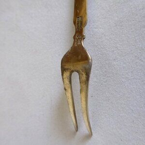 VINTAGE 4” HESTENES NORWAY STERLING SILVER ENAMEL GOLD PLATED APPETIZER FORK