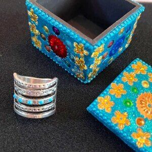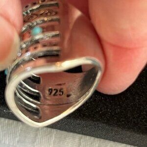 VINTAGE 5 Band Ring with Turquoise Enamel. 925 Silver, see stamp in photo. Includes Blue Jewel embellished gift box (2"x1.5"). Bohemian-Chic Statement ring. Smoke free home. Offers welcome.