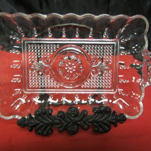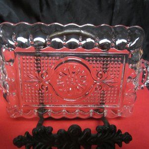 VINTAGE 50'S PRESSED CLEAR GLASS RELISH TRAY, RECTANGULAR SHAPE