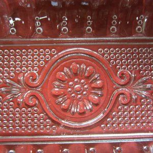 VINTAGE 50'S CLEAR PRESSED GLASS RELISH TRAY, DOTTED WITH FLOWER IN CENTER