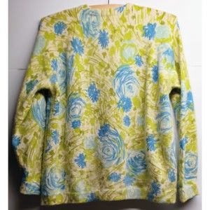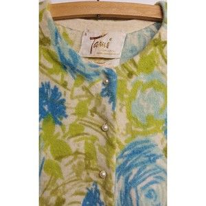 VINTAGE 50S TAMI ORIGINAL, ANGORA SCREEN-PRINTED CARDIGAN, PEARL BUTTONS, SMALL
