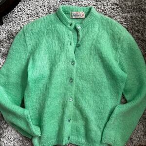 Vintage 50s 60s Jantzen Apple Green Mohair Wool Cardigan Sweater Size 38