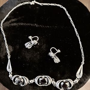 VINTAGE 50s Sorrento Sterling & Hematite 16" Necklace & Screw Post Earring Set