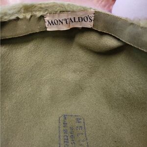 Vtg 1950s Montaldo's mellsine registered in czechoslovakia stamped green chartreuse furry pillbox hat. Please note there was something attached to the hat, probably a flower or broach that is no longer there. This could be a great DIY project!
