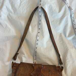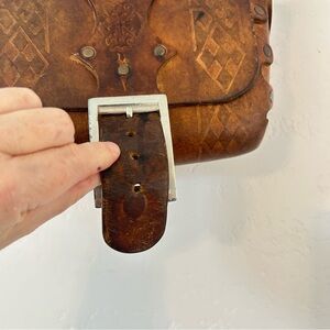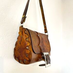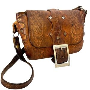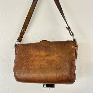 VINTAGE 60-70s Handmade Hand Tooled Brown Leather Boho Western Shoulder Bag
