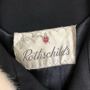Since 1881, Rothschild has become one of the foremost manufacturers of luxury coats and outerwear for women, men and children in the United States. Thick, warm black wool swing coat with insulation layer. Real fur collar. Rare asymmetrical front button placket add a twist to classic design. Union made. Good vintage condition. One corner of the fur is held onto the collar by an interior safety pin. The lining stitching is loose, but still intact. Small spot (pictured). No rips or holes. Approximate measurements: 42” long, 22.5” sleeves, 43” bust. Women’s size medium-large. Refer to measurements for fit.