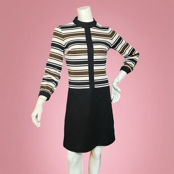 VINTAGE 60s Bleeker Street Striped Mod Style Dress Size 6 Retro Mini