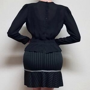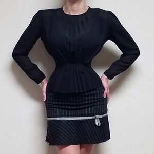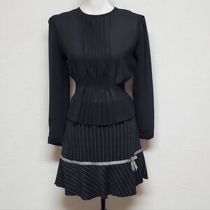 VINTAGE 60s First Chance Sheer Black Blousen Peplum Top Pinstripe Mini Skirt Set