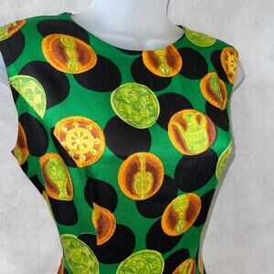 VINTAGE 60s Handmade Grecian Motif Graphic Print Sheath Cocktail Dress Size M