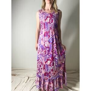 one of a kind sixties vintage maxi dress! smocked bust, sleeveless, ruffle trim