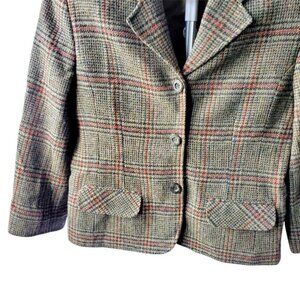 VINTAGE 60s Plaid Wool Green Women's blazer Jacket Size 12