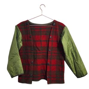 VINTAGE 60's Red Green plaid wool buffalo barn coat liner jacket