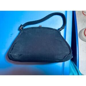 VINTAGE SIXTIES BAG DECORATED WITH NEEDLEPOINT, BEADING, JEWELS, & SEQUINS. BLACK SATIN BACK AND LINING. MEASURES APPROX. 10. X 6 X 3.5