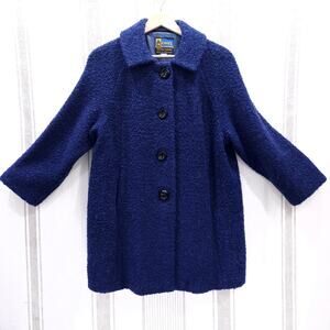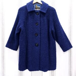 VINTAGE 60s Wool Coat Womens Large Royal Blue Boucle Mod Squad Twee Jackie O