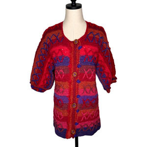 VINTAGE 1960s HAND Crocheted Sweater Mini Dress or Long Cardiga