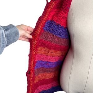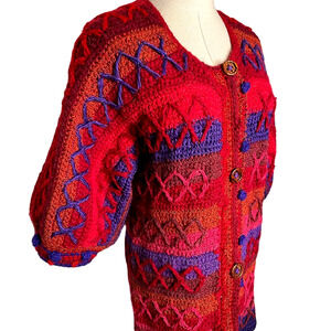 VINTAGE 60s XS Mod HAND KNIT Sweater Mini Dress $380 WOOL Puff Sleeves Red Blue