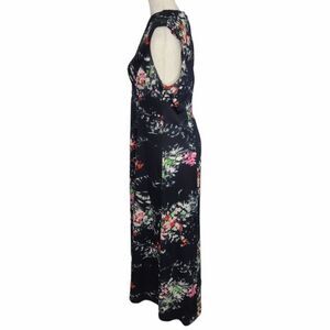 VINTAGE 60s/70s dress black floral sleeveless midi M