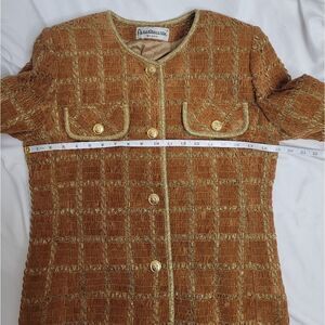 VINTAGE 60s set marigold chenille and metallic gold skirt suit S