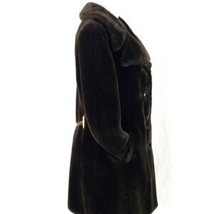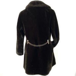 Step back into the glamour of the 1970s with this vintage faux fur teddy coat in a rich chocolate brown. This statement piece features a plush exterior, double-breasted silhouette, and dramatic collar, offering a timeless Penny Lane–inspired look with modern wearability.