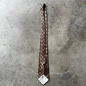 VINTAGE 70S CROWN POINTE BROWN NECK TIE PATTERNED GEOMETRIC UNIQUE DACRON