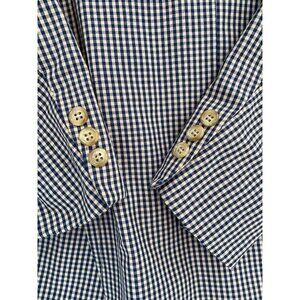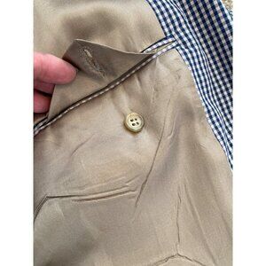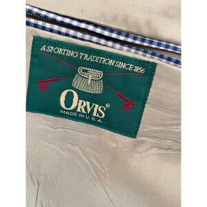 This vintage Orvis men's blazer sports coat features a classic blue and white checked pattern. It's the perfect addition to any gentleman's wardrobe.