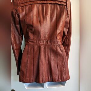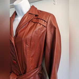 VINTAGE 70S RUST LEATHER JACKET BLAZER BOHO HIPPIE BIKER MOTO WRAP BELTED RETRO