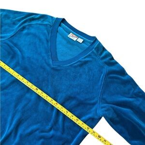 VINTAGE 70s 80s Loafers By RYK Velour Sweater Size Large Blue Beverly Hills