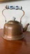 VINTAGE 70s Copper Kettle Delft Blue and White Ceramic Handle Kitchen Decor