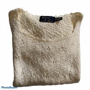 VINTAGE 70s Eyelet Nub Sweater Cream L Poet Twee Academia Bonnie Lee