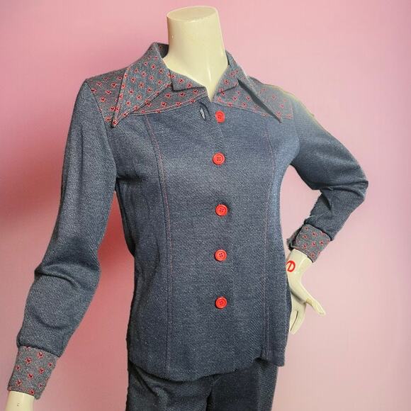 VINTAGE 70s JCPenney Heart Leisure Suit 2 Piece Size 4 Flare Hippie Retro Mod