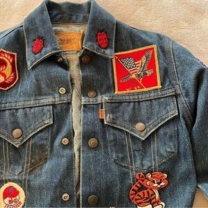 Vintage 70s Levi’s Kids Trucker Jacket with Vintage Patches Orange Tab