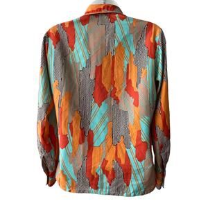 VINTAGE 70s Marc Frederic Beverly Hill Paris Abstract Print Qiana Blouse Size 40