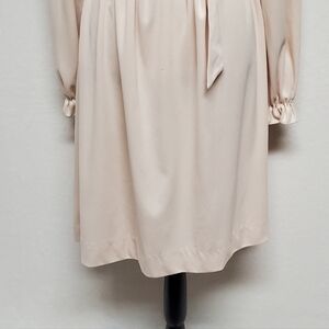 VINTAGE 70s Montgomery Ward Volup Cream Tie-up Belted Long Sleeve Stretchy Dress