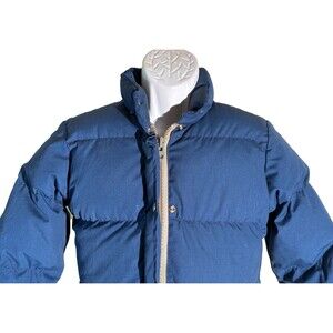 VINTAGE 70s NORTH FACE Brown Label Puffer Down Jacket Blue WOMEN SMALL RARE USA