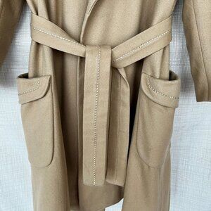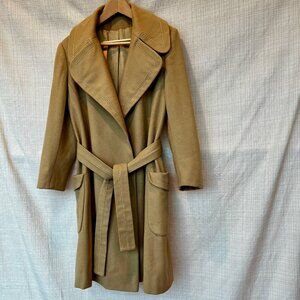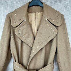VINTAGE 70s Penny Lane Wool Belted Coat with Top Stitching & Deep Pockets