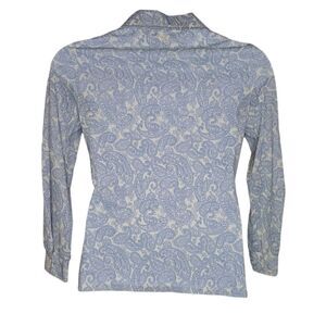 VINTAGE 70s blue paisley pointed disco collar button up shirt M