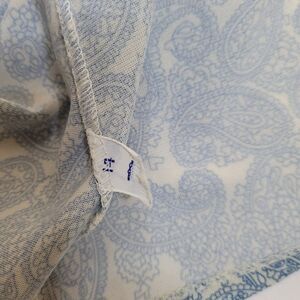Vtg 1970s Bodin Knits pointed disco collar button up blue paisley print shirt. No size or materials tags, please refer to measurements for fit. Most likely polyester or polyester blend.