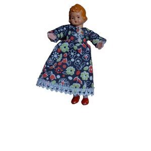 VINTAGE 70s dollhouse miniatures wrapped leg posable doll family set of 4