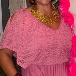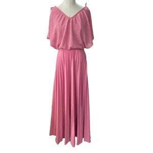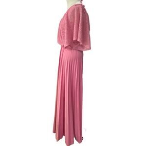 VINTAGE 70’s dusty pink Bridesmaid Maxi Dress with pleats & crochet size 8