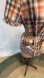 VINTAGE 70s earthy plaid wrap top short sleeve belted waist pockets cotton blend