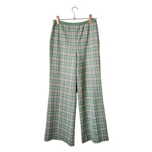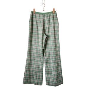 VINTAGE 70s mod plaid pull on pants in green check union made