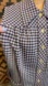 VINTAGE 70s sleeveless button down blue white picnic gingham dagger collar
