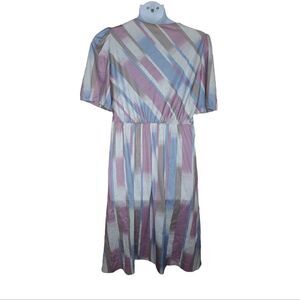 VINTAGE 70s striped short sleeve fit and flare midi day dress M