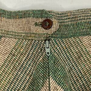 VINTAGE 70s/80s {Casual Corner} Green/Tan Chevron Striped Tweed A-Line Skirt XS