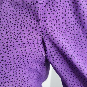 Vtg 1970s Charlie California polyester purple printed blouse top with shoulder buttons. Interesting collar and buttons. Tiny half shoulder pads. Some separation at the seam of the armpit. Would look great paired with a skirt. Marked a 7/8 please refer to measurements. Polyester.