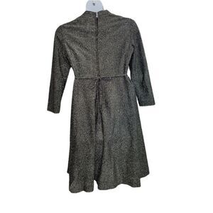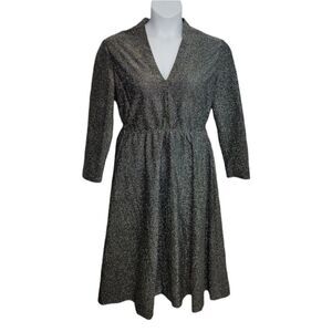 VINTAGE 70s dress silver metallic glitter long sleeve v-neck M