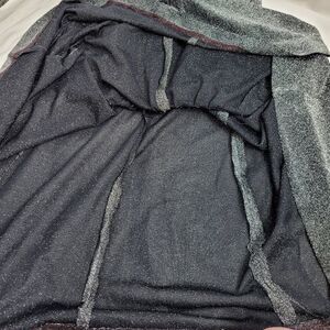 Vtg 1970s glitter sparkle silver metallic long sleeve tie back dress. Unlined. Very fun for a party! No size or materials tags so please refer to measurements. Some stretch.