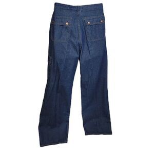 Vtg 1970s K-Mart made in Japan high waist wide leg cargo jeans. Mint condition. Snap buttons. No stretch, marked 17/18, please refer to measurements. Like Kendrick Lamar wore at the superbowl! Cotton.